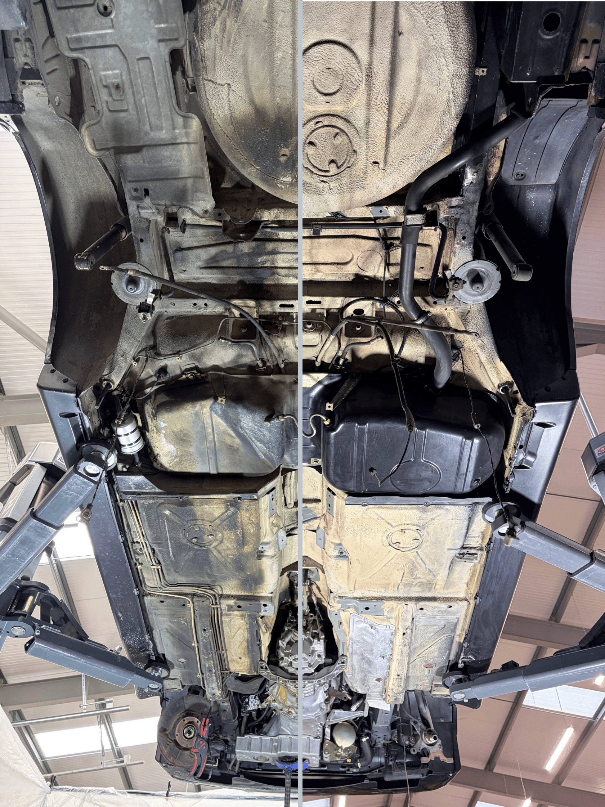 A complete service combining dry ice blasting, coating removal, rust treatment, rust protection and cavity wax. Built for owners who want proper underside restoration and long-term confidence in their car.