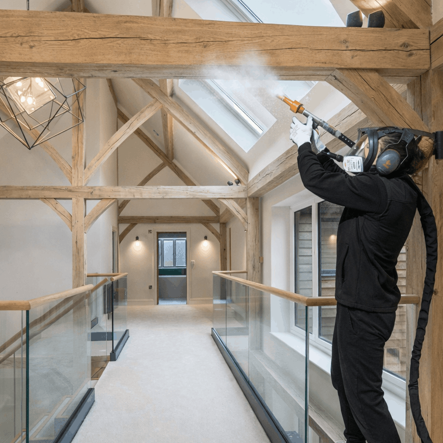 Absolutely. Dry ice blasting is widely used for timber beam restoration, exposed wood cleaning and period feature preservation. It removes dirt, paint and soot while protecting the natural grain and structural integrity of original timber.