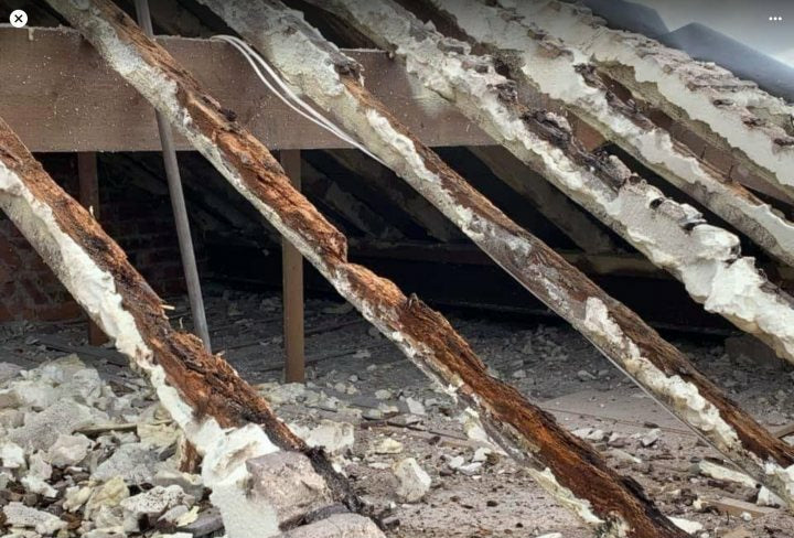 Spray foam insulation traps moisture which leads to damage and staining on rafters, we provide specialist cleaning for affected surfaces as part of damp remediation and restoration.
